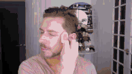 首先,和平时化妆一样,使用妆前乳。摩擦摩擦摩擦,让妆前乳均匀的涂满全脸。