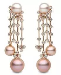 珍珠、钻石耳环(极强光,强伴色及晕彩)。图片来源:jckonline.com
