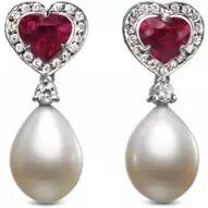 水滴形珍珠、心形红宝石耳环,图片来源:polyvore.com