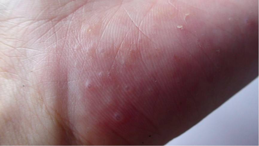 一到夏天,总会有许多童鞋的手上开始出现一些来历不明的小水疱,星罗棋布,有时候还会发痒或者疼痛。比如这样: