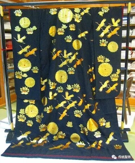 由于打掛、振袖这些和服纹饰十分绚烂,出镜率又高,所以这些就形成我们脑海里对于和服装饰的印象。这些和服的装饰色彩浓烈、布局如画,与中国主流的对称或连续装饰手法迥异。