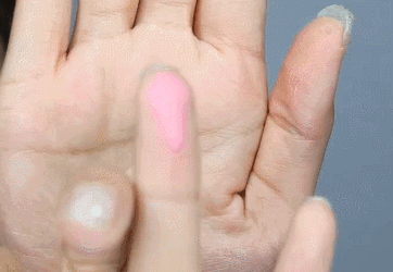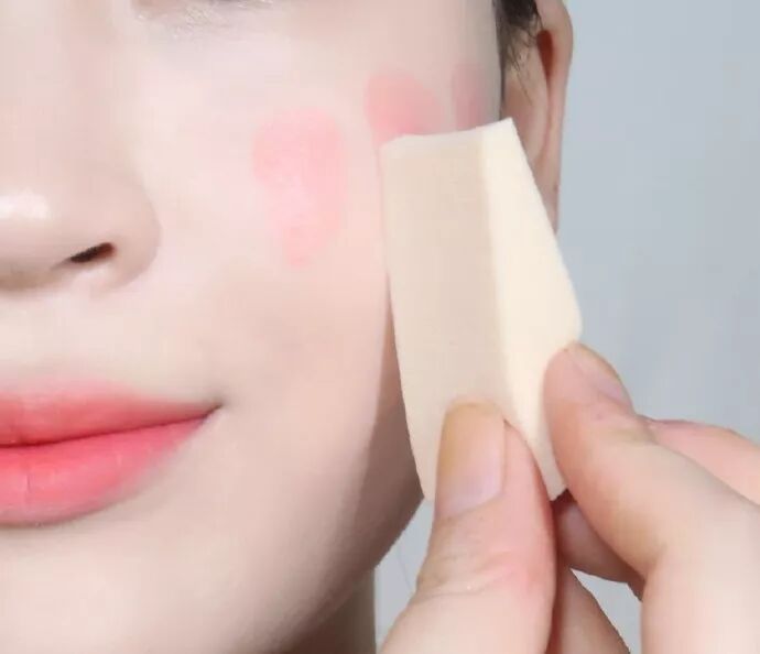 取一款亲肤效果好的三角海绵,将腮红膏轻轻拍开。记住一定是拍开,而不是擦拭。