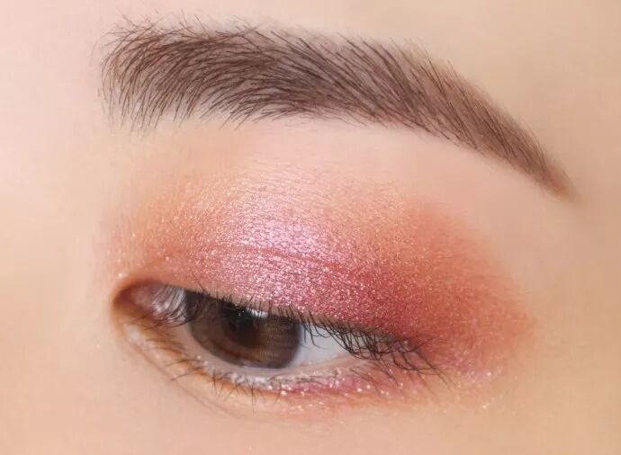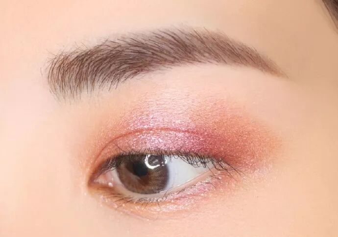 赵丽颖的眼妆非常注重色调统一。以粉色为例,粉色系眼妆虽然美,但画不好就容易显得眼睛肿,所以第一步一定要选择一款浅棕色的眼影打底。这一步是为了让后续的眼影色调不那么突兀。