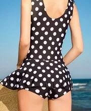 连体衣,加裙子,还有波点设计,是不是有种“实用中透着俏皮,俏皮中有又掺着一丝漫不经心”的赶脚?对了,它还有个名字叫温泉泳衣,一衣两用,值了值了。