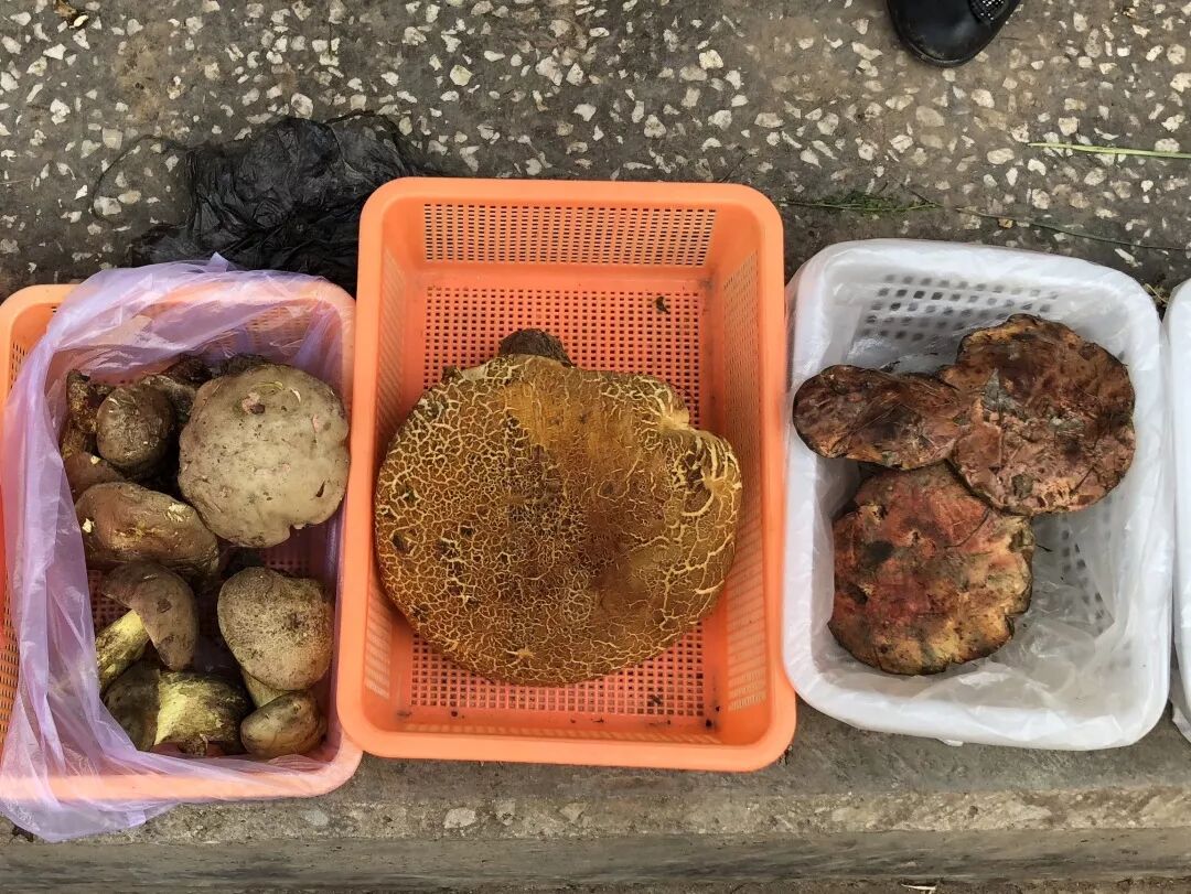 市场上售卖的老虎头:疣柄牛肝菌 Leccinum sp.(中)