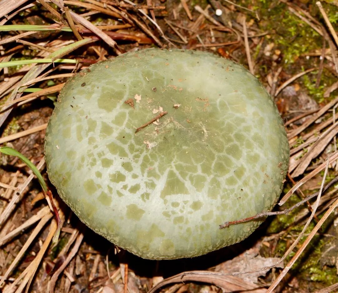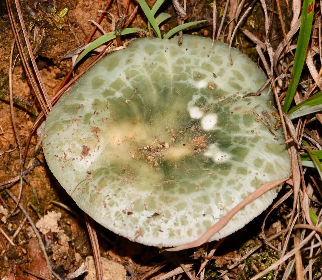 变绿红菇(Russula virescens)又称青头菌,这是云南当季市场上最容易看到的野生菌了。浅绿色菌盖常有斑状龟裂。相似的还有一种被称作“青脸菌”的铜绿红菇 Russula aeruginea 也较常见 。