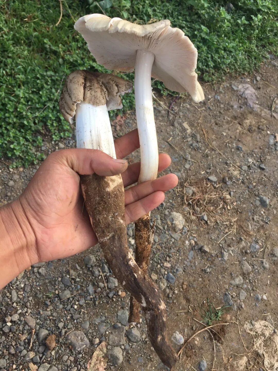 海姆蚁巢伞(Temitomyces heimii),又名谷堆鸡㙡,菇蕾时期因菌柄中空常被当做假鸡㙡(左)。