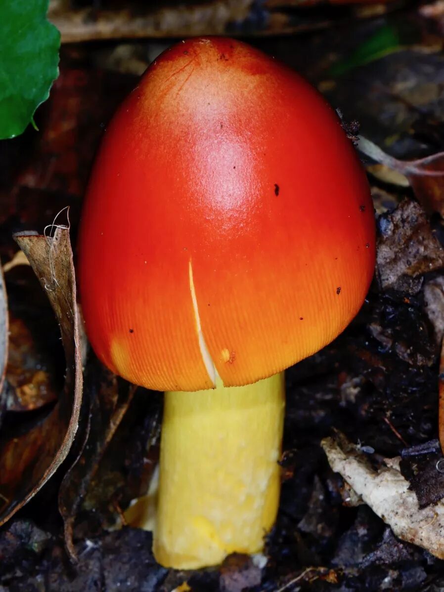 拟橙盖鹅膏(Amanim caesareoides)是其中体型最大的代表,它色泽橙黄,个头巨大,味道鲜美。常生长在高山林下,但一些当地人称其为“黄罗伞”,并认为其有剧毒甚至连人都不能靠近分毫。多种橙色的鹅膏长相酷似,有毒无毒傻傻分不清,如果没有经验千万不要采食。