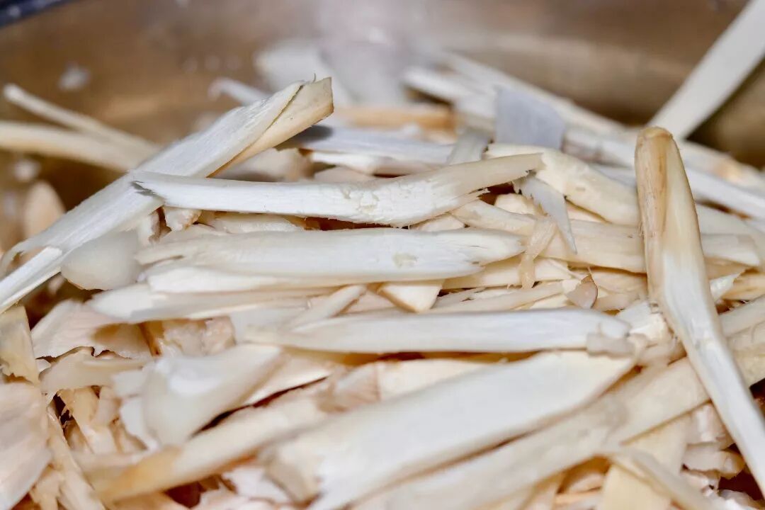 鸡㙡以菇蕾为上品,肉质细嫩,清香脆甜,可用刀切成片食用。待鸡㙡打开菌盖呈伞状时,鸡㙡口感便会下降,肉质绵软,有时甚至百嚼不烂,此时的鸡㙡不宜刀切而宜手撕。