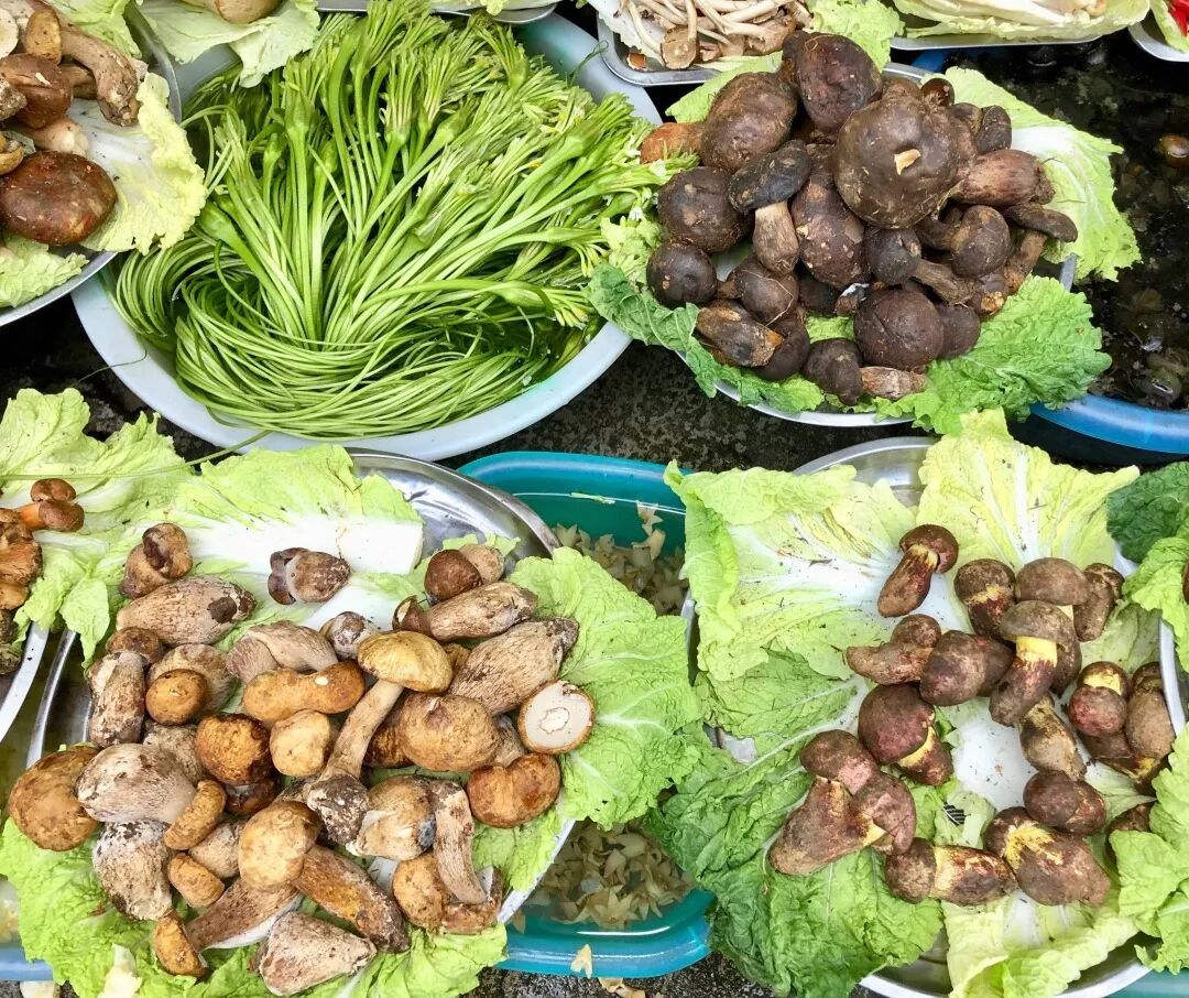 截止2019年三月,云南市场上共梳理出227种常见野生食用菌和14种条件可食(经无害化处理后可食用)常见野生菌。进入六月后,云南各地的野生菌便在市场上陆续冒出头来,一直延续到十一月才逐渐结束,其中以七八九月最盛。说到云南野生食用菌,首先当提“云南四大菌王”:松茸、鸡㙡[zōng]、牛肝菌和干巴菌,此外还有鹅膏、红菇、鸡油菌、虎掌菌、口蘑、珊瑚菌等 。