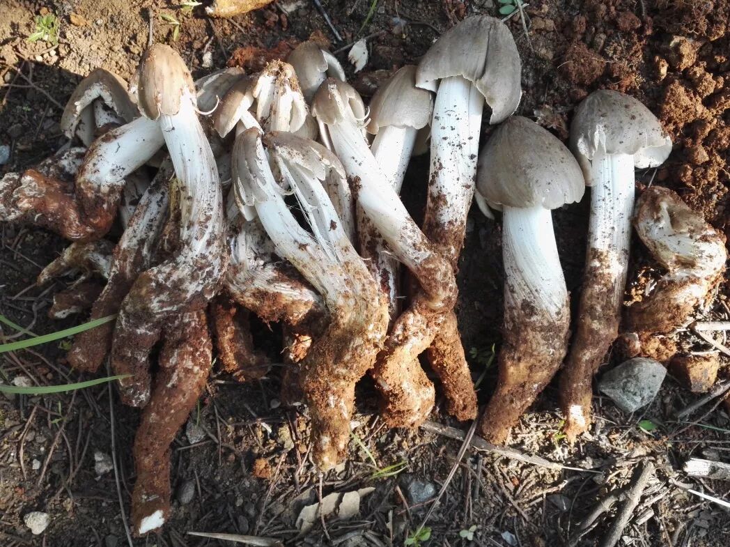 因此,目前鸡㙡还无法人工栽培,一切号称人工栽培的鸡㙡都是骗人的,比如常年以“黑皮鸡㙡”这一商品名行走江湖的人工栽培菌卵孢小奥德蘑(又叫卵孢长根菇,Oudemansiella raphanipes)就是个不折不扣的西贝货 。卵孢小奥德蘑温顺可驯,较易栽培,菌肉脆嫩,与鸡㙡有些类似,也难怪会被拿来冒充鸡㙡这类上等野生蘑菇了。