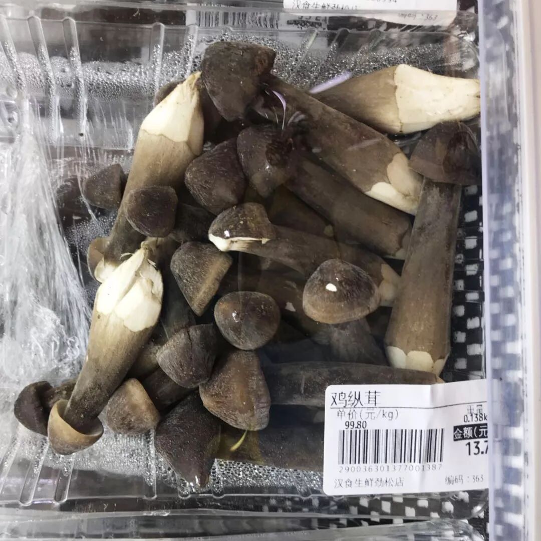 青皮鸡㙡品质稍逊于白皮,菌盖常呈灰色,菌柄下方常凸起。