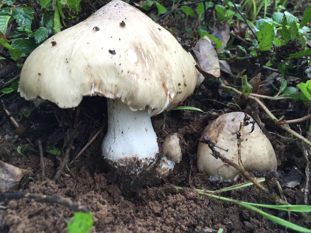 另外一种朴素的可食用鹅膏菌是袁氏鹅膏(Amanim yuaniana),俗称“麻母鸡”。它长相酷似剧毒鹅膏——灰花纹鹅膏(Amanita fuliginea),只不过比后者大一圈,而后者引起过多起中毒死亡事件。所以,一些云南当地人就认为麻母鸡有剧毒不能食用,但还是可能出现在市场上。