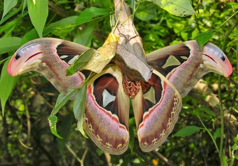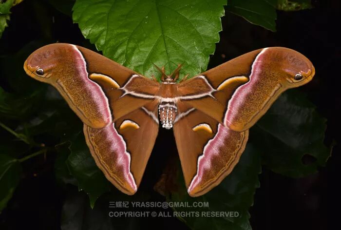 蝴蝶会使许多人产生美丽、浪漫的遐想。但说到蝴蝶的亲戚蛾子,许多人对它们的了解,就只限于绕着灯“扑棱扑棱”。实际上,很多“扑棱蛾子”的美丽和奇异,比起蝴蝶毫不逊色,甚至还有过之,完全有资格在昆虫中C位出道。今天的主角乌桕[jiù]大蚕蛾(Attacus atlas),就是这样一种明星蛾子。