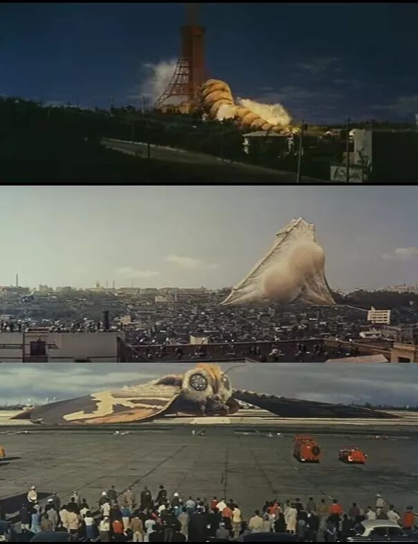 摩斯拉的幼虫、蛹、成虫。出现在1961年的电影里。图片:Toho / Wikimedia Commons