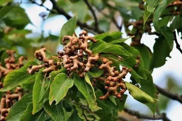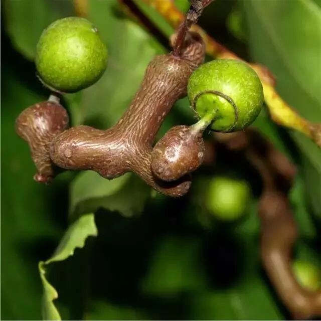 我们吃的果类,虽然都叫果实,但可食用部位多种多样,而枳椇的可食用部位来自一个意想不到的结构,即果序轴,也就是先前的花序轴。枳椇的果期一般在9~10月,此时果序轴明显膨大,弯曲,形成七扭八拐的形状,其中会储存大量的糖分。跟大白菜一样,立冬前后的枳椇是最甜的。相比之下,果序梗末端的小果实反而显得不那么引人注意了。枳椇的果实成熟时呈黄褐色,北枳椇的果实为暗褐色至黑色。北枳椇英文名为日本葡萄干树(Japanese raisin tree ),就是来自果实形态。