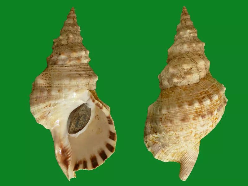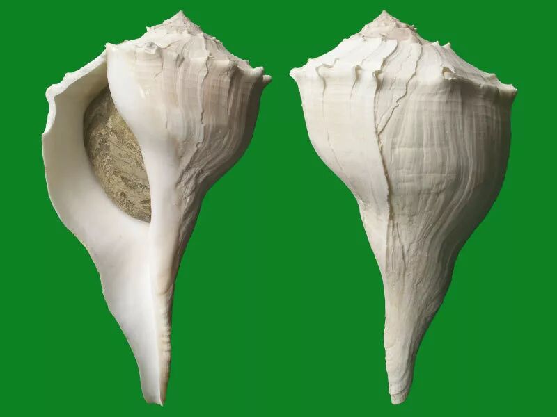 如果范围放到印度尼西亚和澳大利亚一带,还有另外一种体型很大的螺,叫澳洲圣螺(Syrinx aruanus)。澳洲圣螺个头儿大,壳薄,吹起来回响特别好,非常适合做螺号。这三种螺的常形都是右旋,如果是这三种螺中出现的左旋螺,那的确是非常珍贵的。但其实,跟电影中海螺的外形最相像的是名叫左旋峨螺(Busycon contrarium)的海螺。螺如其名,这种螺的常形就是左旋。虽然图上看起来发白,实物其实颜色更黄一些,跟电影中的海螺非常像。不过需要特殊说明一下,左旋峨螺既不在东海,也不在南海,而在加勒比海。虽然在中国沿海地区完全没有分布,但在美国佛罗里达一带属于常见物种。也就是说,可能敖丙去加勒比旅游的时候带了个纪念品回来,又把它送给了哪吒。从某种意义上来说,也算是诚意满满了。况且也说不定,敖丙就是为了哪吒特意跑到加勒海比去捉的呢。其他参考资料: