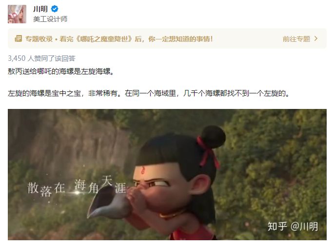 电影《哪吒之魔童降世》口碑炸裂,其中有一幕是敖丙送给哪吒一只海螺作为友情的证明,说只要吹响这只螺,他定千里来相会。有网友发现,敖丙送给哪吒的海螺是一只左旋海螺,表示这样的螺十分珍贵。