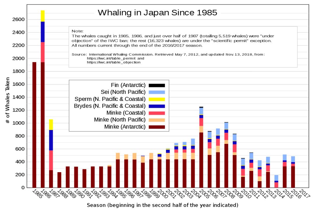 2018年,日本提出重新开放商业捕鲸,IWC否决了这一提议。随后,日本宣布退出IWC,并于2019年7月1日重启商业捕鲸。日本水产厅的文件称,日本的基本政策是基于科学证据,推动海洋生物资源的可持续利用。尽管日本表示商业捕鲸计划不会对鲸类种群产生有害影响,但社会各界对此仍充满疑虑。