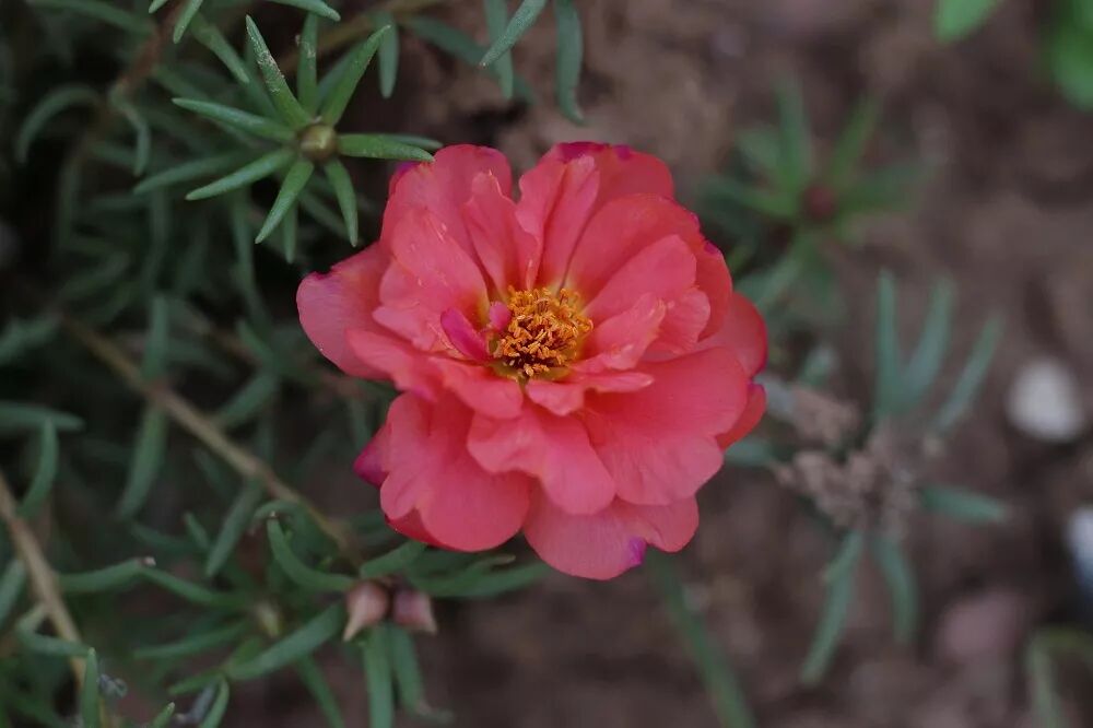 来自南美洲的大花马齿苋,也继承了马齿苋家族的优良传统,非常耐旱。单看名字,它似乎跟马齿苋没什么区别,但实际上它们还是有差异的。比如它的叶子是更加有利于减少水分流失的松针状,而不是马齿状的宽叶,这意味着它有更强大的耐旱能力。大花马齿苋植株不高,也就30厘米左右,枝条水平向着周边生长扩张,更大面积地享受太阳的青睐。当然,它的花确实比马齿苋大,而且作为供观赏用的花卉,经过选育以后,也更加漂亮。