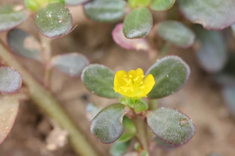 马齿苋一家似乎都具有多肉的特征,全身都是肉嘟嘟的,蓄满了水分,这使得它们应对干旱环境很有一手。马齿苋科的“科长”马齿苋(P. oleracea)更是靠着这一手,能够抵抗四十多度的高温,遍布祖国村庄的田间地头,城市的路角砖缝,以及各家各户的餐桌。马齿苋又叫麻绳菜,是十分常见的野菜。或许就是因为这样好吃的(大误)生命力,连植物小白都对它马齿状的叶片和黄色的小花印象深刻。