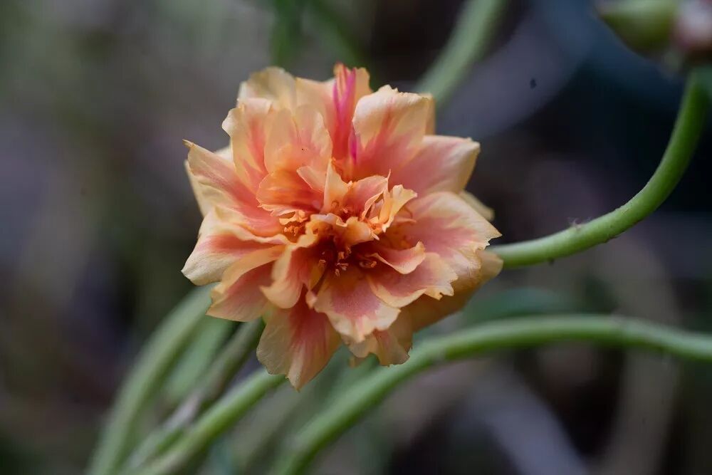 它们决定花形态的基因发生了突变,一部分雄蕊转变为花瓣。环翅马齿苋中的“重楼”花型,可以说是宿根太阳花里的奇葩,雄蕊完全变成了细碎的花瓣。因为没了雄蕊,就很难产生可育的种子。