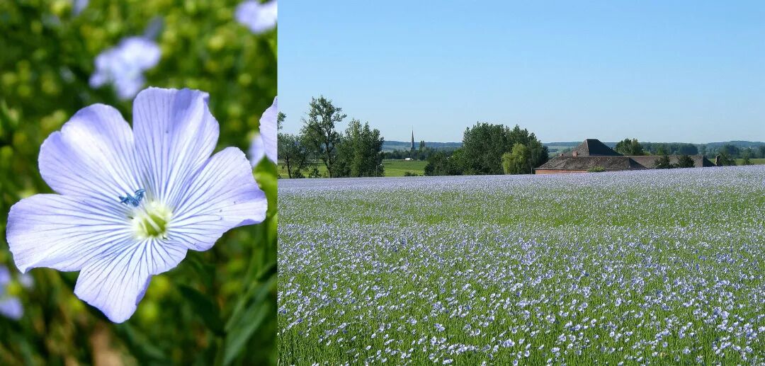 亚麻花朵呈蓝白色,盛开时,成片的亚麻田既壮观,又不失一种素雅的美。图片:Roger Ward / flickr;Jean-Pol GRANDMONT / wikimedia