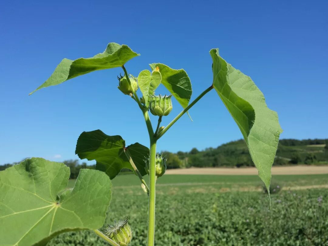 苘麻算得上是最有识别特征的杂草之一了。金黄色的花朵有着五片花瓣,以及单体雄蕊这些锦葵科植物的通用特征,再加上圆心形的互生叶片,苘麻并不难于认出来。