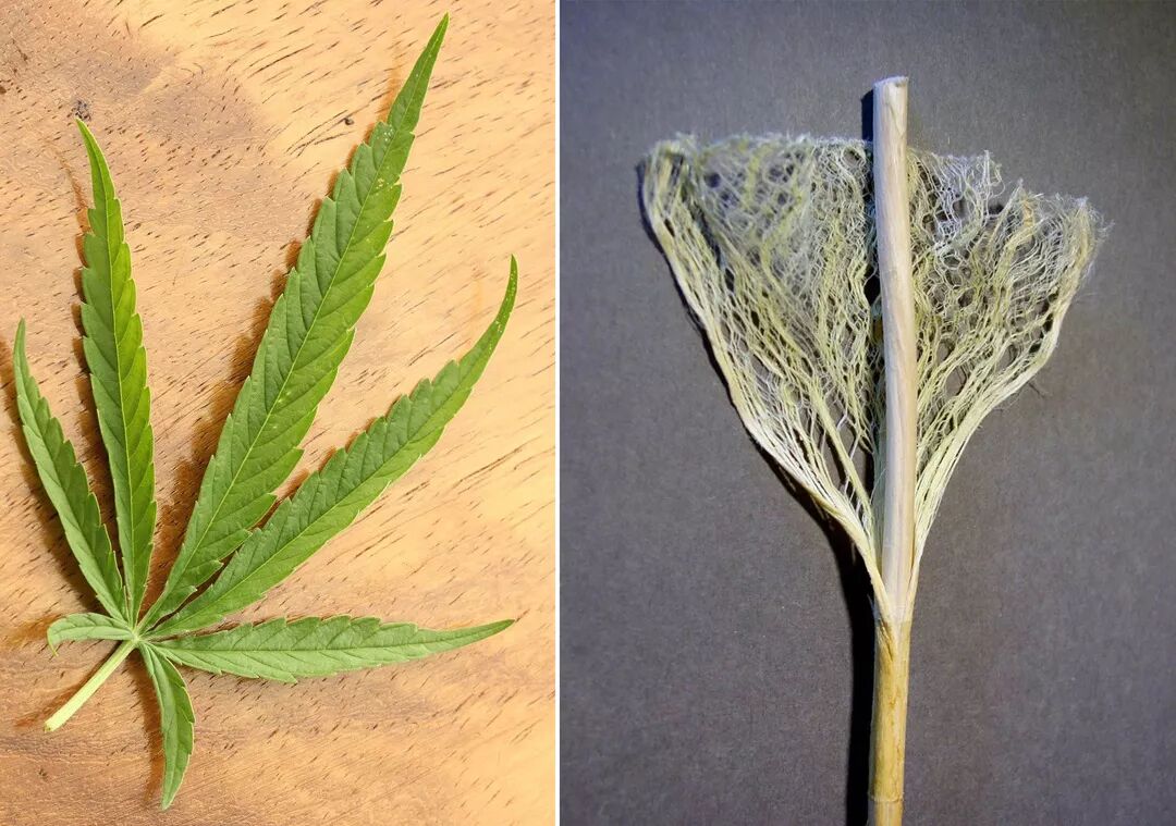 大麻叶与纤维。图片:JonRichfield;Natrij