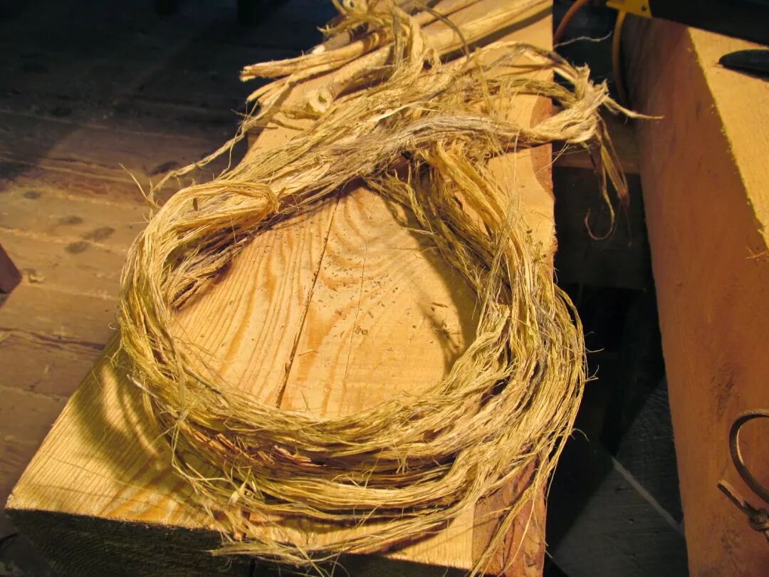 苘麻纤维制成的麻绳。图片:earthskillscorrespcoursetrailhead