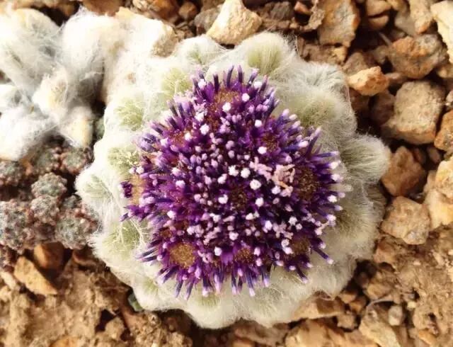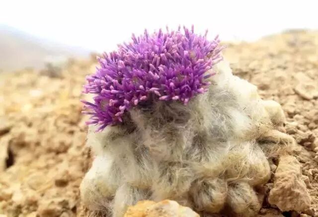 这是亚属的模式种雪兔子S. gossypiphora,植株较大,远看可能更像兔子。它的花序藏在顶端的毛丛里,要剥开毛才能看见。图片:徐波