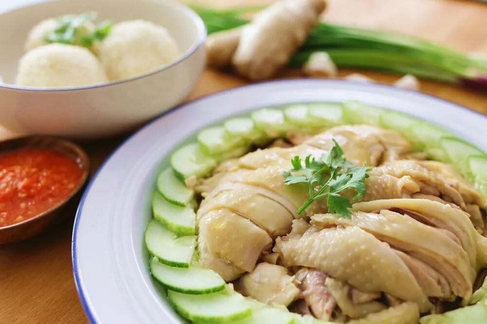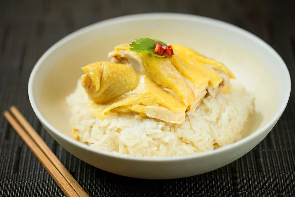 一块蘸着黑豉油或辣椒酱的鲜嫩滑鸡,一勺沁满红葱和斑兰叶清香的鸡油饭,这道洋溢着热带风情的食物,总使人忍不住一口接着一口,它就是海南鸡饭。