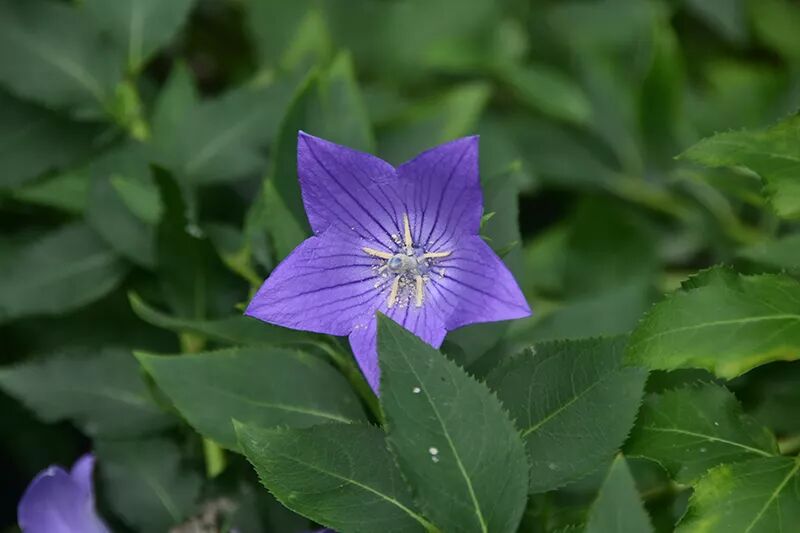 和叶互生的风铃草属众多小草本植物不同,桔梗的叶大多对生或轮生,身材和花朵也大了许多。桔梗的花盛开在夏末秋初的季节,最多见的色彩是蓝紫色。这种梦幻的蓝紫色,也称为桔梗色(就是本文用到的紫色)。