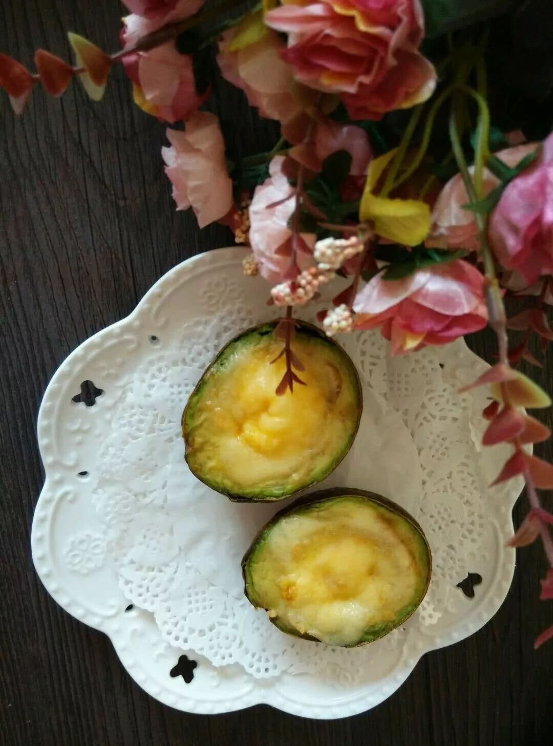 牛油果窝蛋:把打好的生鸡蛋倒进去掉核的牛油果里,根据自己的喜好放调料、培根碎之类的,放在烤箱里180度15min左右就可以了!爱吃芝士的话还可以撒一层芝士再烤5min,大功告成!