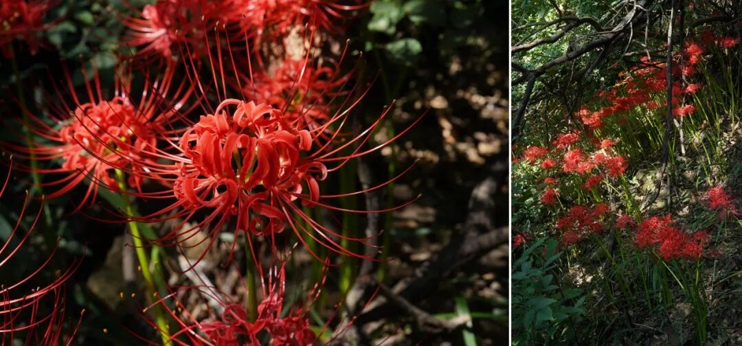 苏州这个季节开得最耀眼的野花,莫过于石蒜。这种花其实很多地方都有,有时也会被公园栽培,但我更钟情于山林中野生的石蒜。它们是苏州的原住民,在郊外的山中很容易见到,比如天平山、上方山、灵岩山等;它们也会闪现在城市里的草坪上,有时还会从绿化带的灌丛中钻出来,像是和你捉迷藏。