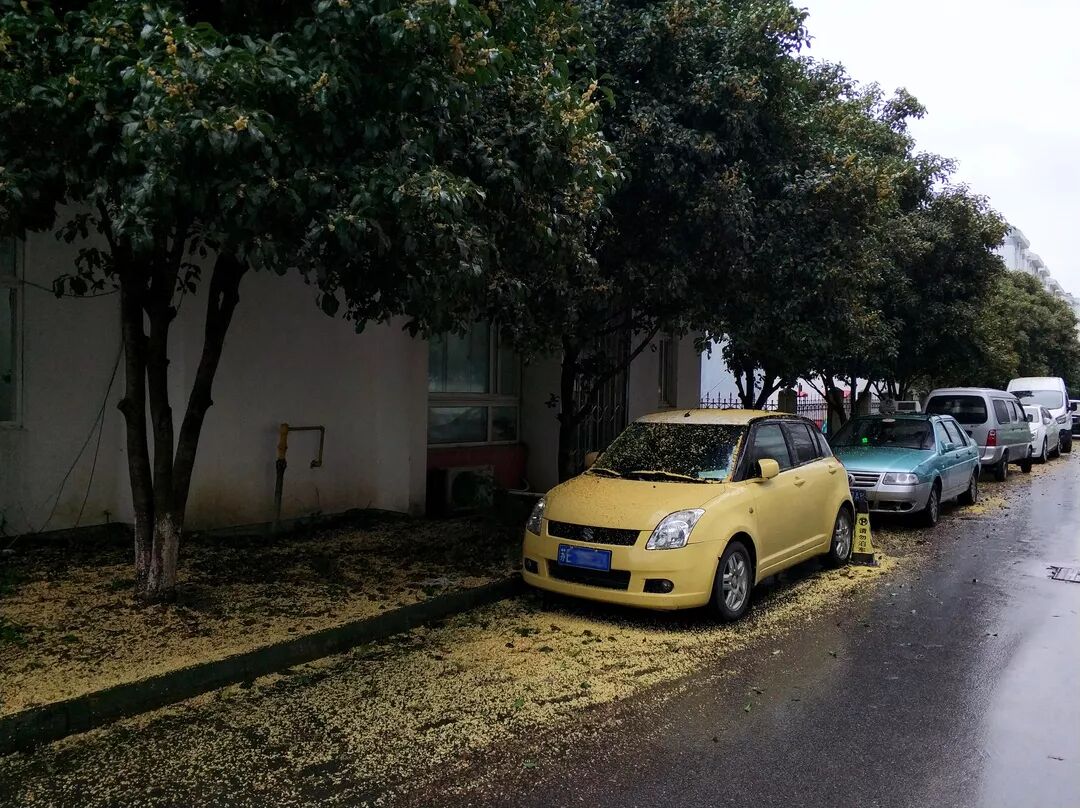 苏州姑苏区某小区,清晨落了一地的金桂。图片:含笑