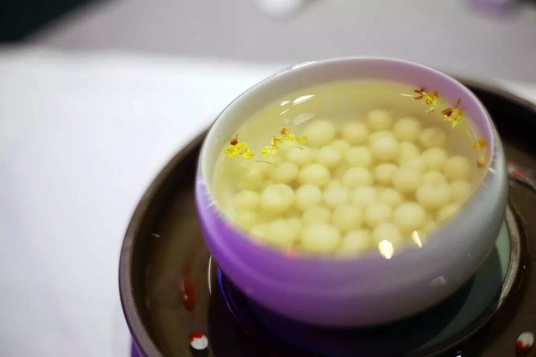 桂花是苏州市名义上的市花,但苏州人对桂花的爱可不止停留在嘴上,更是深入到了舌尖。桂花糖藕、桂花糖山芋、桂花糖芋艿,那都是初级的。这个时节,桂花的好搭档是最新鲜的芡实——苏州人更喜欢称它为鸡头米。软糯弹牙的鸡头米,伴着金黄的桂花,一勺缓缓入口,留下的是满嘴的甜蜜与清香。