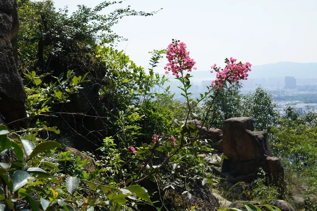 天平山上还有很多野生的紫薇。清朝时,乾隆皇帝六下江南,四次来到天平山,这里生长着那么多紫薇,某种意义上也是一种巧合(暴露年龄)。城市里的紫薇栽培非常普遍,都是修剪得整整齐齐的小乔木,宛如听话的乖宝宝;山里的紫薇则是自由肆意地生长,是十足的野孩子。与平常的印象不同,它们的植株大多都很矮小,有些紫薇甚至只有十几厘米高就已经长出花苞了,其实挤爆紫薇的花苞也是一种乐趣。