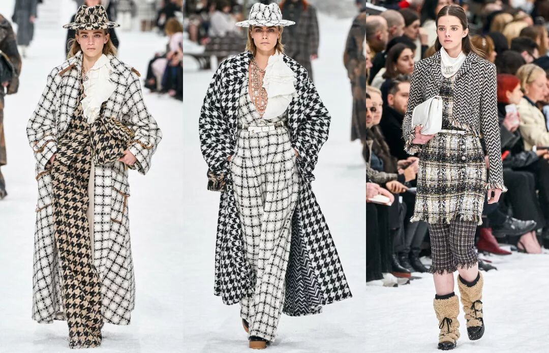 除了最近几年一直在流行的威尔士格纹外持续走红外,如果非要说今年秋冬格纹有什么特别,大色块拼接格纹与千鸟格可以特别关注一下。