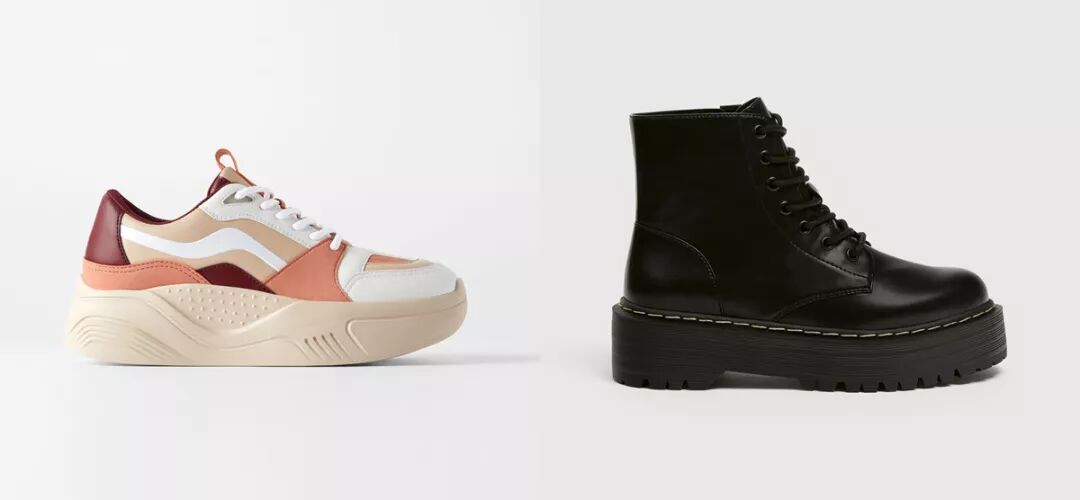 快时尚品牌将土酷贯彻的更为彻底,除了笨重的防水台高跟鞋、防水台马丁靴外,松糕鞋大面积上架。