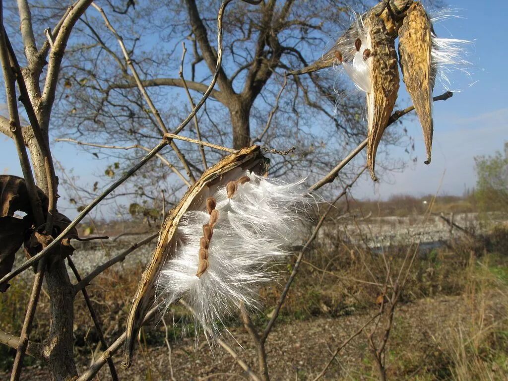 萝藦的种子外面长有细毛,用来增加和空气的接触面积,“乘风飞翔”。图片:Qwert1234 / Wikimedia Commons