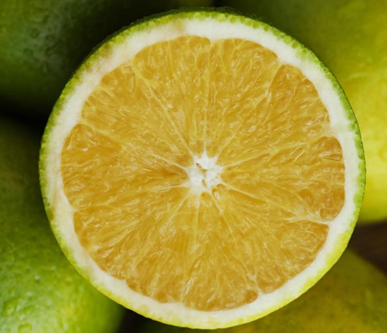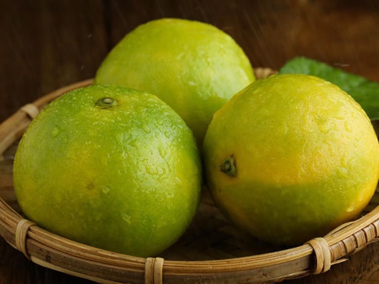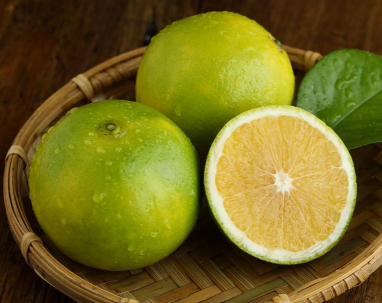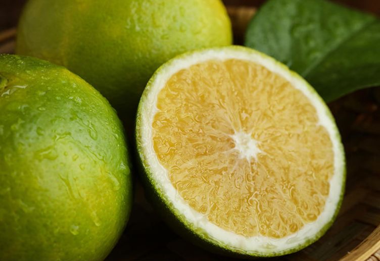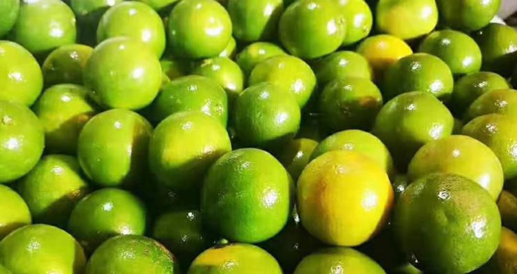 绿油油的果皮下藏着一颗清甜的心。看起来酸倒牙的阳光柠香橙,其实几乎尝不出酸味,吃到嘴里,觉得比黄皮橙子还要甜上几分。