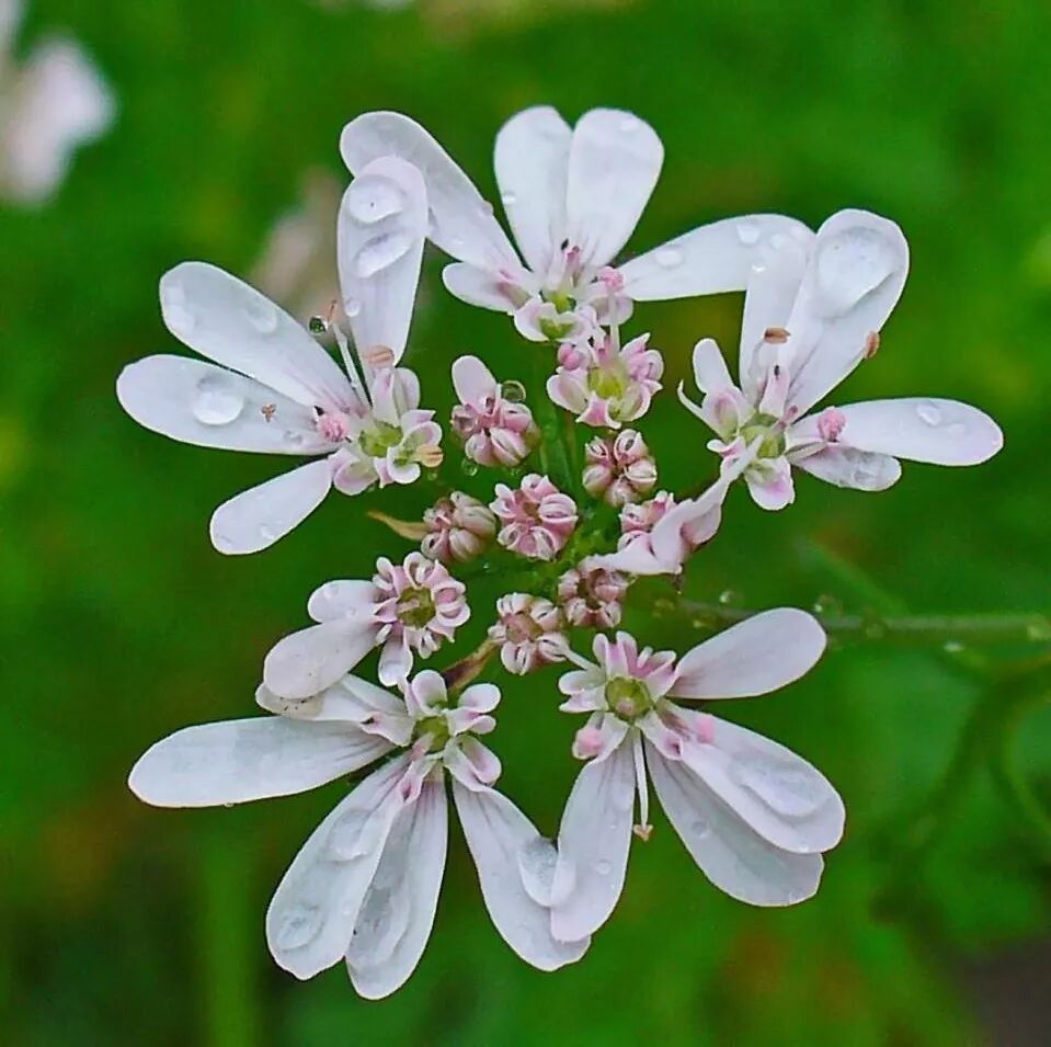 二是花瓣异型。伞形科顾名思义,若干朵小花组成一个伞形花序,而每个花序外侧的小花,靠外侧的花瓣比内侧的要大得多,这样会使一个花序看起来像一朵大花,更能吸引昆虫注意。