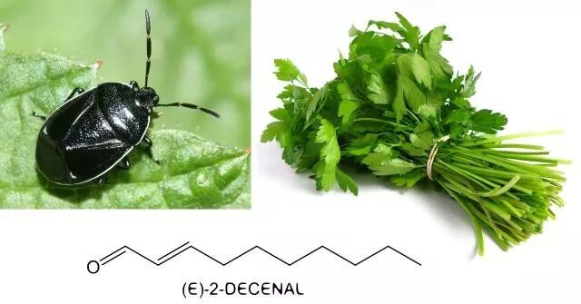 香菜的气味来自它所含的不饱和醛类,如反式-2-癸烯醛,与一些半翅目昆虫的分泌物成分相似。图片:fragrantica.com