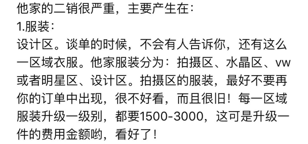 预定时,套餐里写到衣服的分类有“1件紫水晶,2件黄水晶,3件白水晶 ”,但并没有人告诉你这几个水晶啥意思——拍摄当天见到实物你就懂了,因为白水晶区根本挑不出3件能穿的,想要多几件紫水晶区的漂亮衣服?掏钱吧。