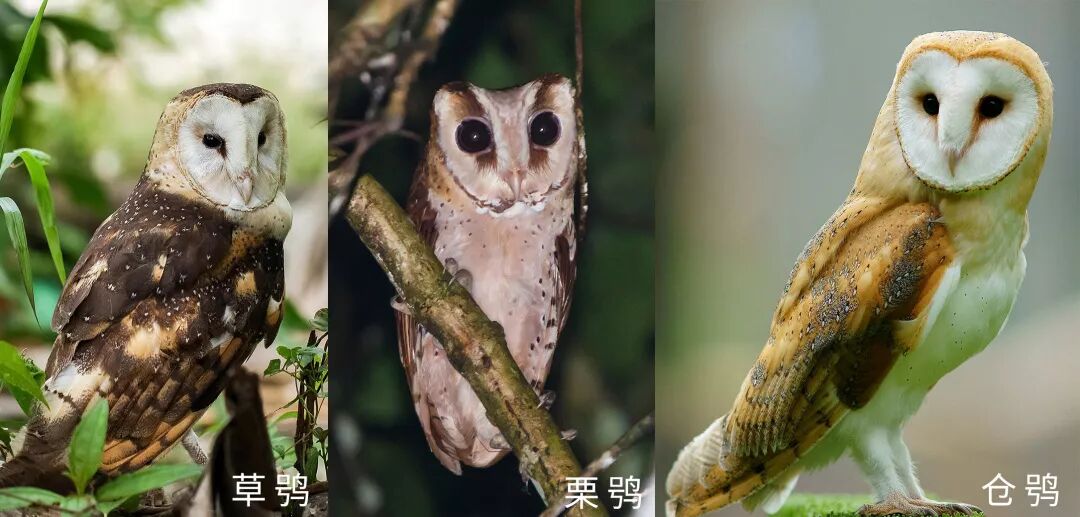 这16种跟大家惯常印象中“猫头鹰”差别较大的鸮类,在分类上属于草鸮科(Tytonidae),中国境内仅分布有3种:草鸮(Tyto longimembris)、栗鸮(Phodilus badius),以及今天的主角仓鸮(T. alba)。