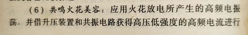 医美并不是什么新鲜事物。早在百年前,日本就有医生开展重睑术(也就是割双眼皮)的临床记录。两次世界大战制造了大量毁容的患者,但也在客观上促进了医疗美容技术的发展。这本指南里记录的医美项目,有些已经随着医美技术的进步而退出了大家的视野。例如这个“共鸣火花美容”,看原理有点像杨永信教授会开展的项目。