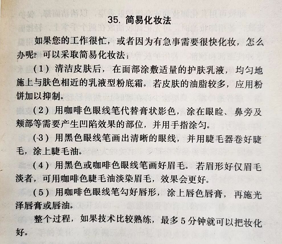 70-80年代,自然感的妆面重新回到时尚界的中心。这让棕色眼线笔成了美妆界人手一支的必备款。近10年后,当时的国内终于也赶上了这股心机裸妆的热潮。从这个简易化妆法也不难看出,当年的眼线笔还是和如今的有很大区别的。不仅可以画眼线,用来做阴影、眉笔,甚至勾出唇线都不在话下。那时的眼线笔其实更接近眉笔,还没有今天这样固若金汤的防水技术。