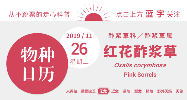 今天的主角红花酢浆草(Oxalis corymbosa)。图片:Minghong / wikimedia commons