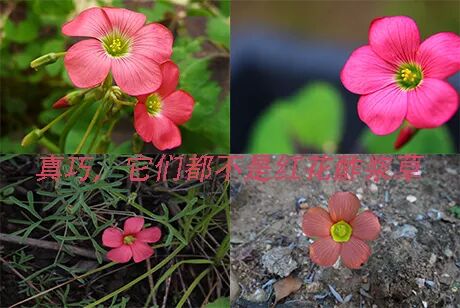 开红花的酢浆草,并不是红花酢浆草……图片:mr_fab & tonyrebelo / inaturalist ; Pixabay ; wikimedia commons